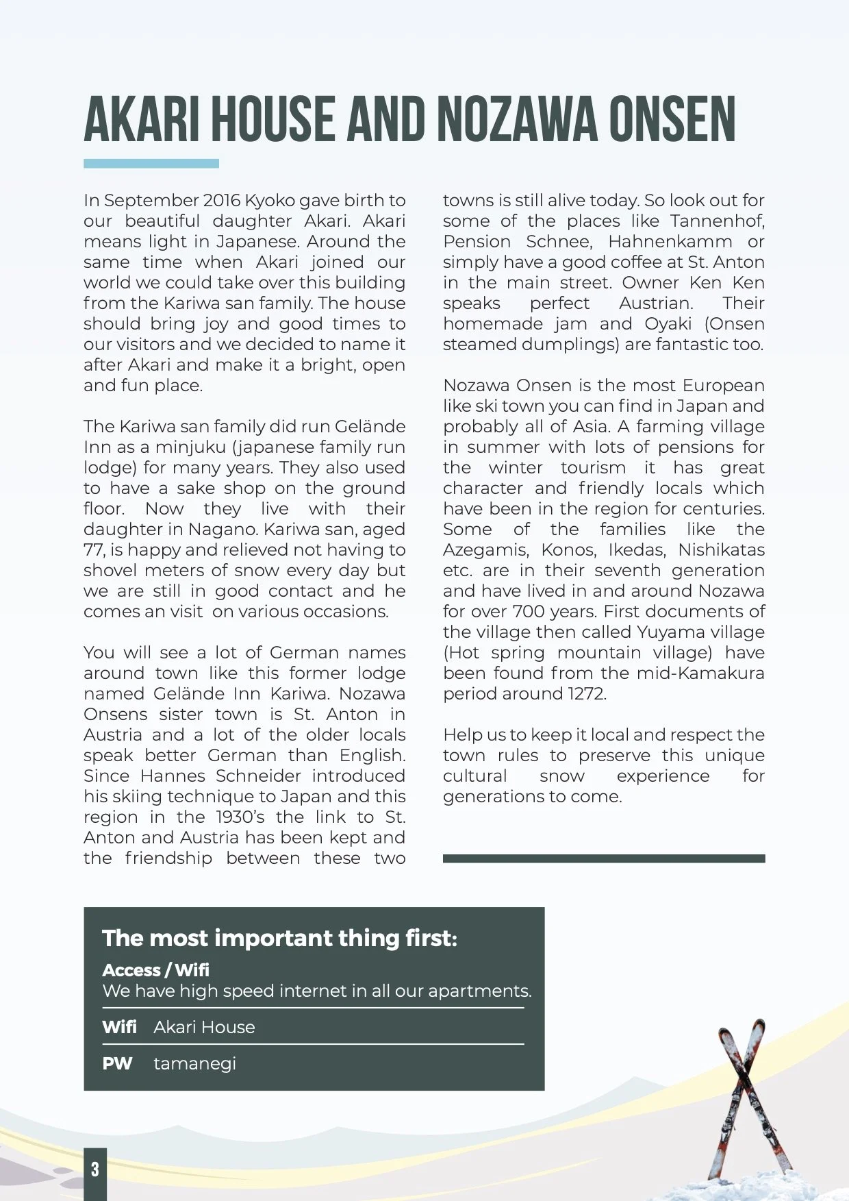 To experience a true Japanese town, its local culture, festivals and people far away from commercial tourism , then you must visit Nozawa Onsen in Spring, Summer or Autumn. ”